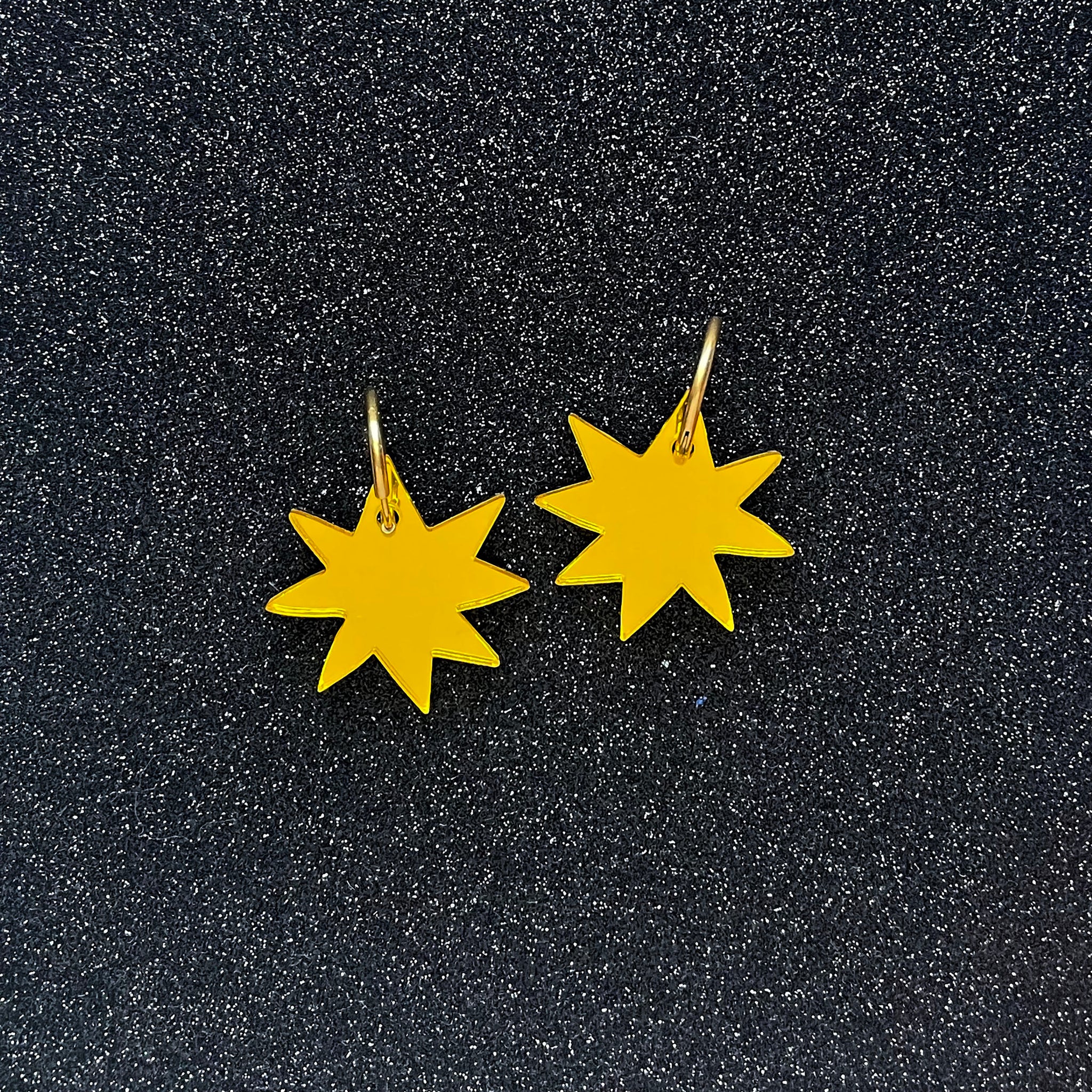 The yellow and silver mirror now come with a 2mm black acrylic back and chunky hoop, the rainbow glitter is a single piece with no back.