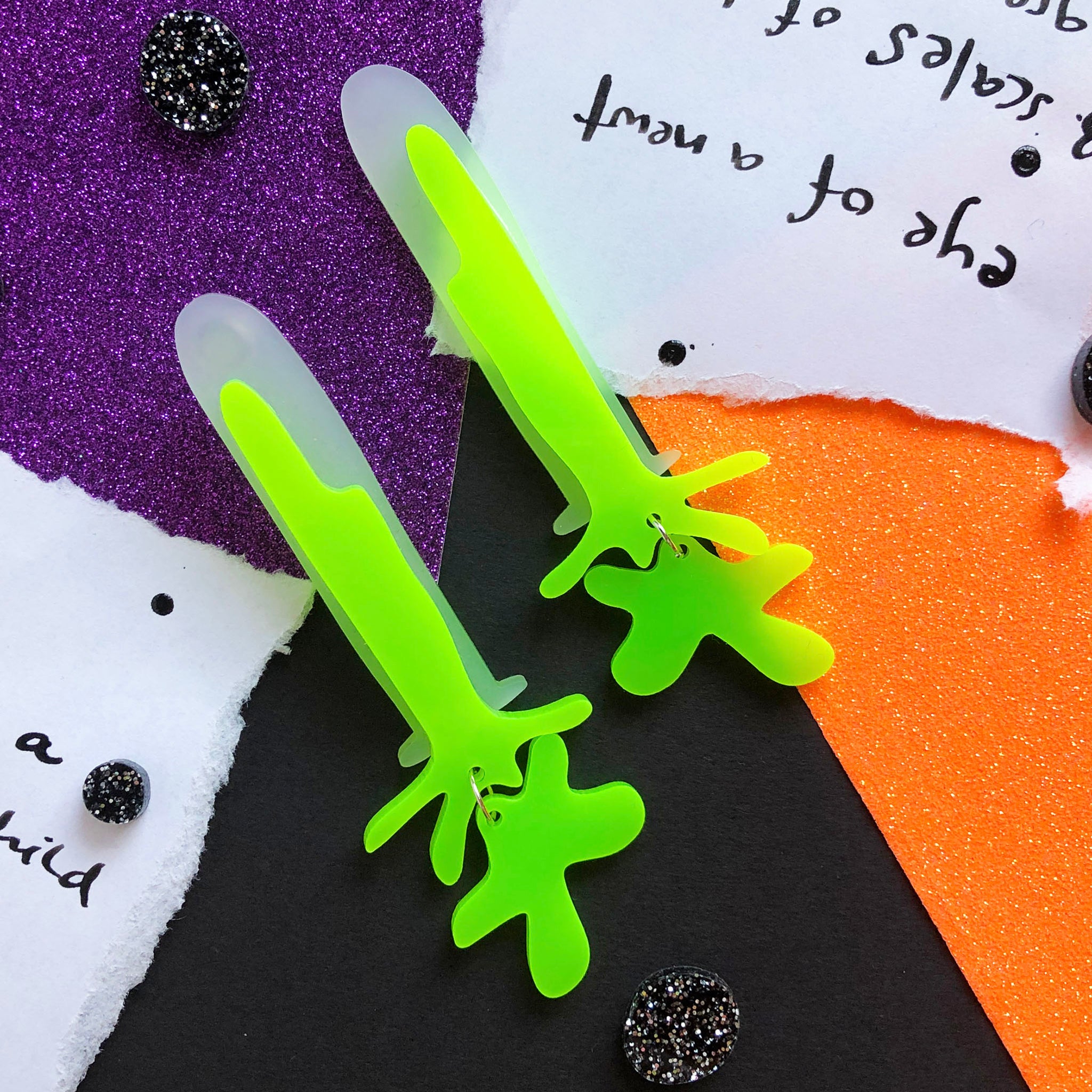 As with my other potion bottle designs, the frosted acrylic is at the back, and the 'liquid' is placed on the front, giving it a fun 3D effect. And that splat dangles very pleasingly indeed.